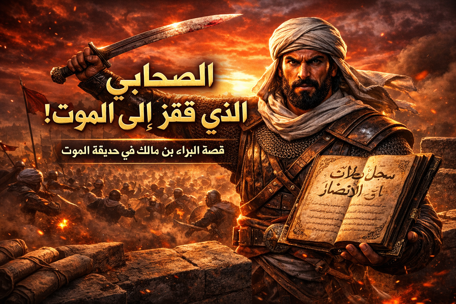 في تلك اللحظة الحرجة، تقدم البراء بن مالك واقترح فكرة جريئة جدًا. طلب من المسلمين أن يرفعوه على الرماح ويلقوه داخل الحديقة وسط الأعداء. كانت خطة تبدو أقرب إلى التضحية بالنفس، لكنها كانت الوسيلة الوحيدة لفتح الباب من الداخل.