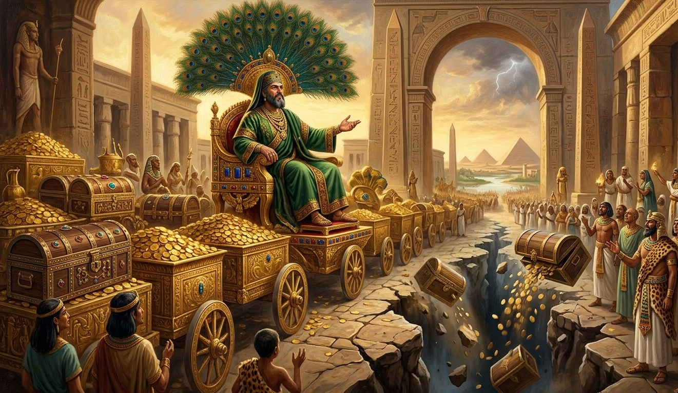 إنها قصة قارون، التي ذكرها الله في القرآن الكريم عبرةً لكل من يغتر بماله وينسى من وهبه إياه.